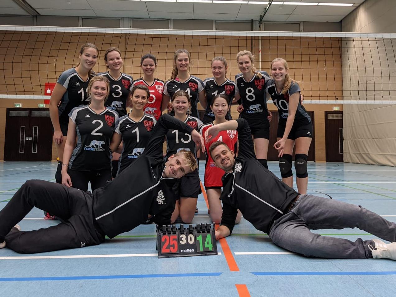 Das Spiel war von langen Ballwechseln und einer starken Abwehr auf beiden Seiten geprägt. Aus diesem Grund brachten wir viel Variabilität in unsere Angriffe, was dem Gegner zu schaffen machte. Wir selbst hatten mit der Angriffssicherung zu kämpfen, da der Block der Gegner bisher in den vorherigen Spielen nicht so gut stand. Den ersten Satz konnten wir mit 25:22 gewinnen. Durch unseren Höhenflug mussten wir den zweiten Satz mit 14:25 abgeben. Im dritten Satz fingen wir uns wieder, was besonders am guten Teamgeist und dem Anfeuern von außerhalb des Spielfeldes lag, und verloren ihn nur knapp mit 24:26. Da wir im vierten Satz Nerven zeigten und uns der Kampfgeist gepackt hatte, gewannen wir diesen mit drei Punkten Vorsprung. So mussten wir zum ersten Mal in den fünften Satz gehen. Dieser war durch eine (nerven)starke Aufschlagserie von Lea Fu. geprägt. Schlussendlich gewannen wir mit 15:9, auch wenn der letzte Punkt nicht ganz zufriedenstellend war. Denn dieser wurde durch einen Aufstellungsfehler der Gegner nach der eigens genommenen Auszeit vergeben. Wir freuen uns schon auf das Rückspiel und hoffen, dass wir dieses aufgrund unserer weiter verbesserten Spielweise deutlicher für uns entscheiden können.